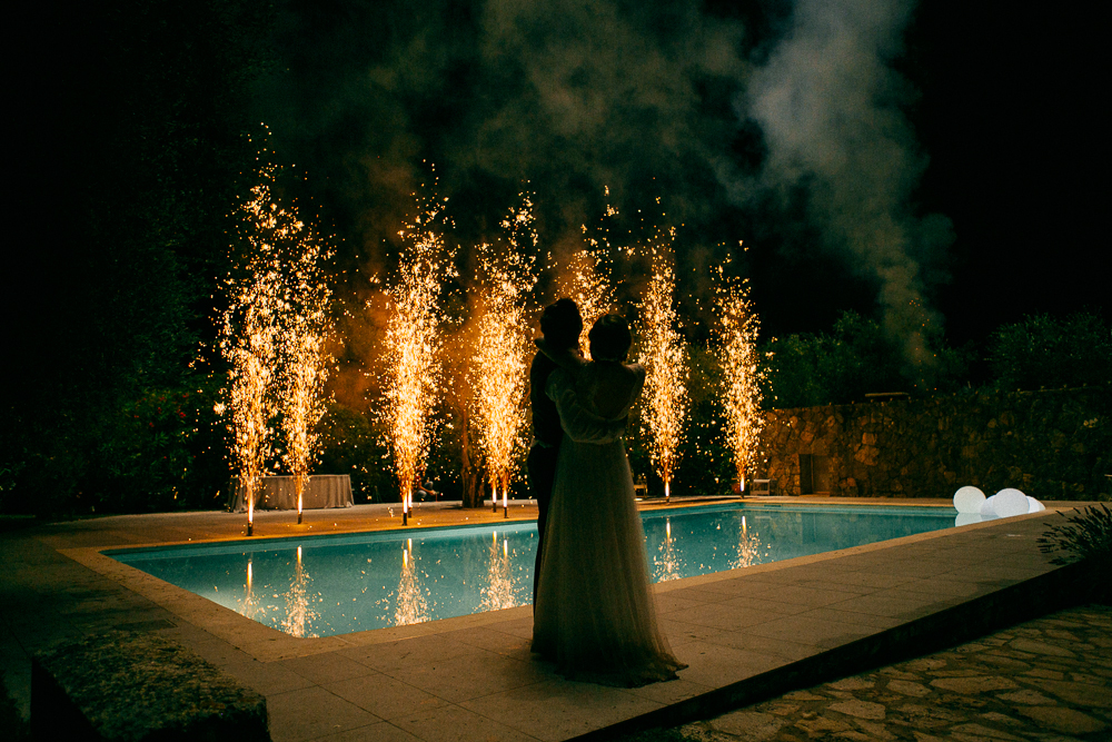 Les mariés n’étaient pas au courant de cette animation pyrotechnique, surprise du père du marié, qui a eu son petit effet sur le couple et sur les invités !